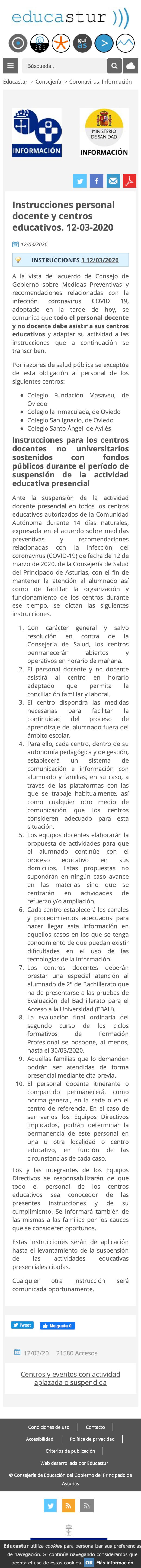 instrucciones personal docente y centros educativos 12/3/2020
