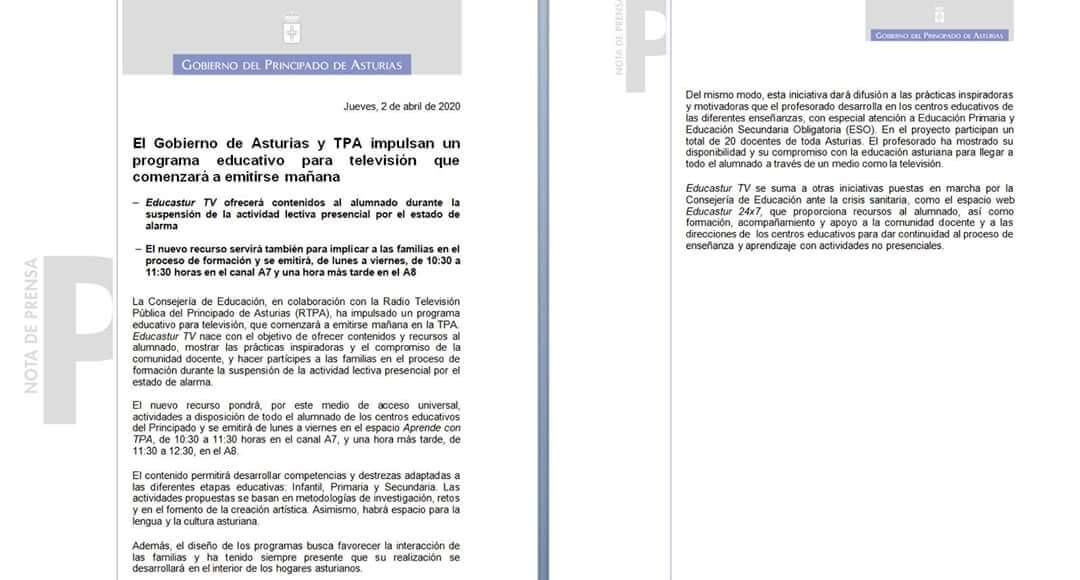 comunicado de la Consejería de Educación de Asturias